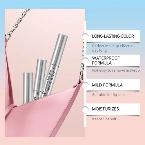 Our lip liner stripping solution contains polyvinyl alcohol, glycerin, and disodium EDTA. It soothes the lips and provides extra moisture. Give natural luster, add beauty. Antioxidant, protects lip skin. Its use method is very simple: 1. Apply the right amount of liquid with a lip brush; 2. Apply evenly along the lip line or all over your lips; 3. Allow 10-20 minutes to dry, during which time do not touch or rub your lips; 4. After drying, gently peel the product from the outer edge inward. Designed for long-lasting makeup results, keep lip gloss bright all day long. Strong waterproof formula, sweat and moisture proof.